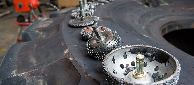 When a tyre is damaged the oxidation of the steel carcass could generate an almost immediate failure. The rubber in the damaged area is removed up to the steel and new rubber is cured on site to prevent future oxygen intrusion. For further information