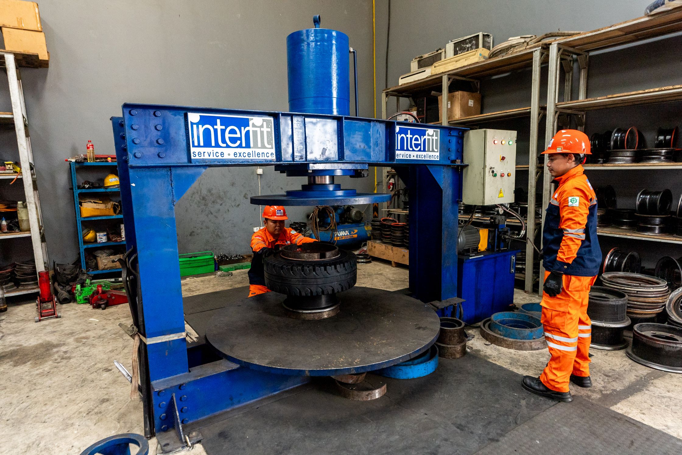 Keahlian produk dan rangkaian layanan lengkap membuat penggantian ban dengan Interfit menjadi mudah. Tim profesional memberikan layanan pemasangan di lokasi melalui mobile press dan program pertukaran roda, yang dirancang untuk cepat, efisien, dan meminimalkan waktu henti mesin. Kami melakukan inspeksi armada serta perawatan penting ban dan roda untuk memastikan operasional berjalan pada produktivitas maksimum.